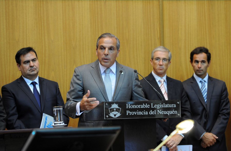 Durante su exposición, el gobernador neuquino hizo un repaso de todas las actuaciones de la provincia para impulsar el desarrollo de los yacimientos de gas y petróleo no convencionales; en particular las rondas de negocios realizadas durante 2009, que serían las que posteriormente permitirían descubrir las potencialidades de la formación geológica Vaca Muerta.