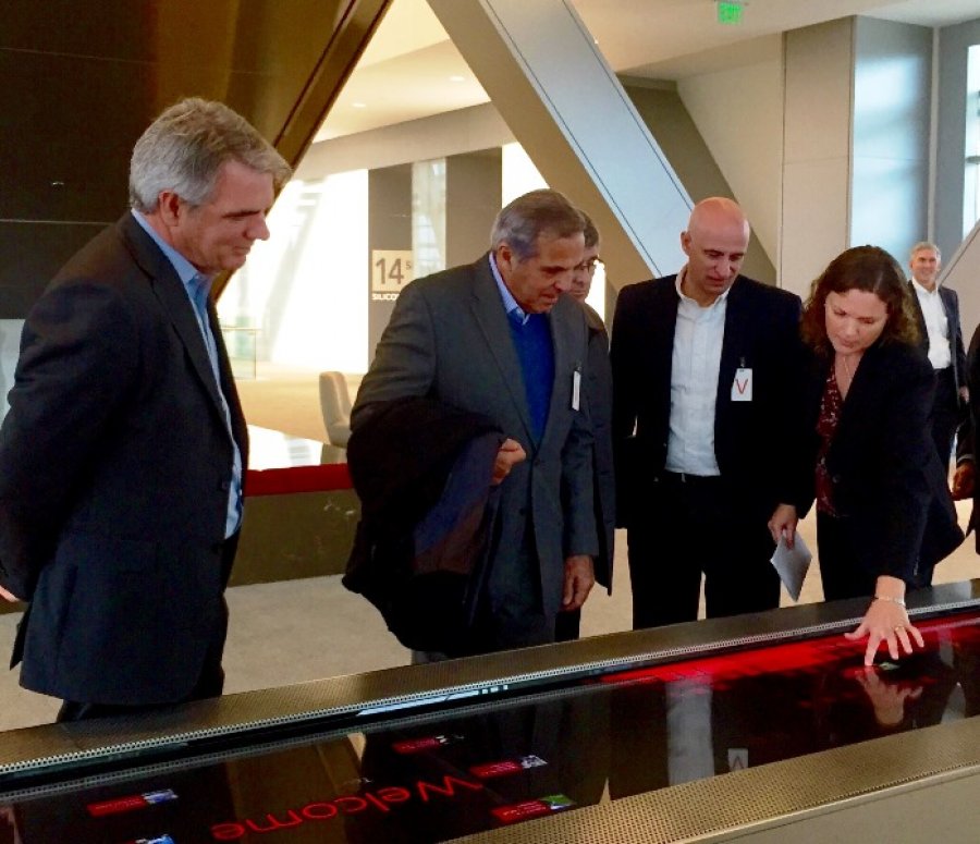 En su recorrida, Sapag y el resto de la comitiva, visitó el Energy Center el cual está diseñado para incorporar el compromiso de la compañía con la tecnología de punta y la ingeniería. Una característica principal del centro es un cubo flotante de 10.000 toneladas que parece flotar sobre una plaza que se encuentra abajo.