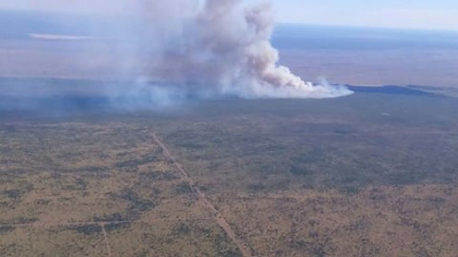 A solo 10 kilómetros de la planta de gas varias dotaciones trabajan en el control del fuego para resguardar el predio de la distribuidora de hidrocarburos Oldelval (Oleoductos del Valle S.A.)
