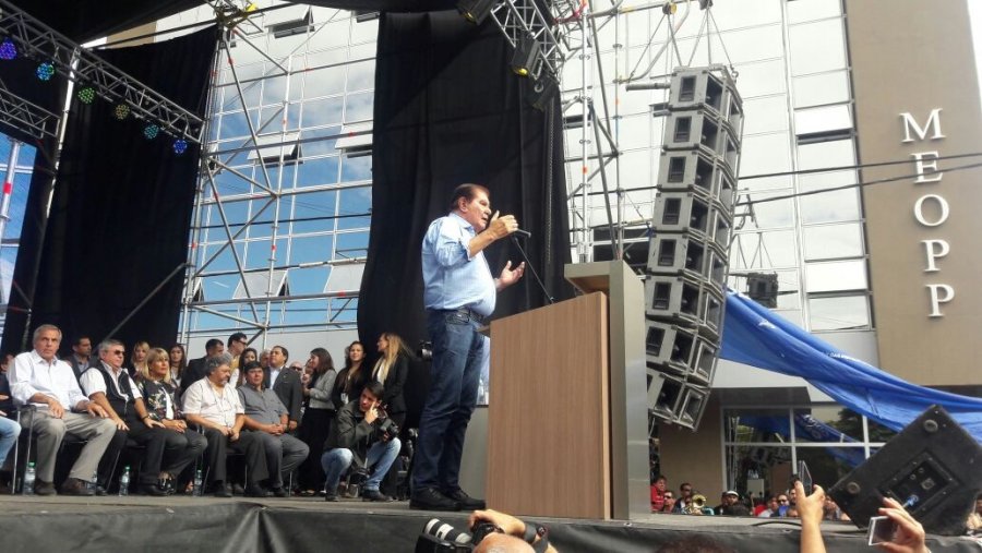 En referencia a la inauguración del edificio, Pereyra dijo “aquí están sus aportes, que hacen de manera mensual y van a quedar para los trabajadores petroleros”, dijo y agradeció la presencia de trabajadores petroleros de Neuquén y Río Negro