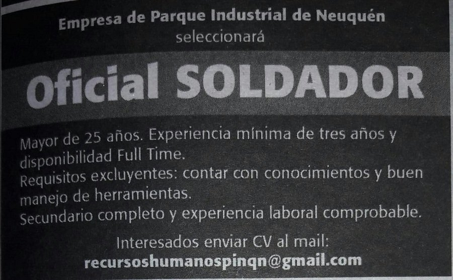 También pudieron observarse avisos que buscan médicos para yacimientos, personal para cubrir puestos de vigilador, entre otros.