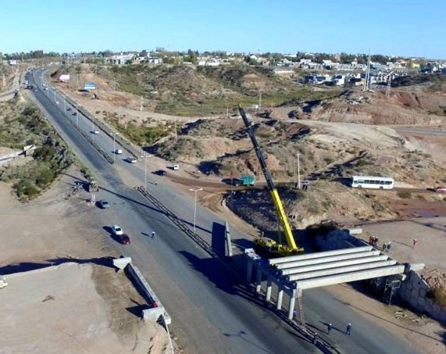 Durante el sábado 27 y domingo 28 de mayo se trabajó en la colocación de las vigas del puente que la cruza sobre Ruta Provincial 7 y pasará a conformar el nuevo recorrido de la Ruta Nacional 22, que conectará en forma ágil el este con el oeste, en una suerte de circunvalación que desviará el tránsito de la zona urbana.