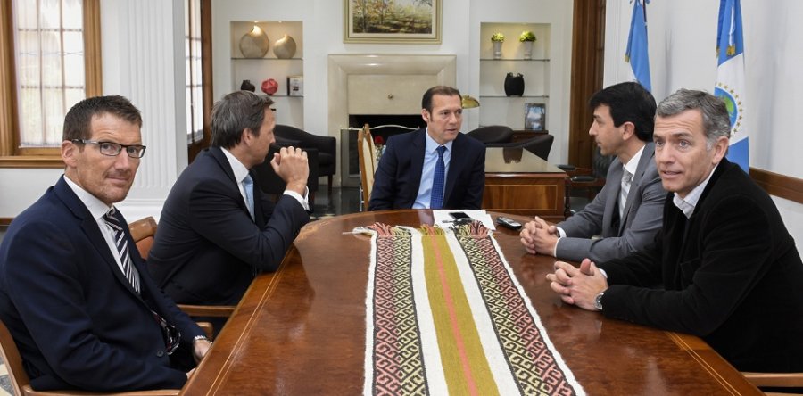 El gobernador de Neuquén Omar Gutiérrez recibió el viernes 25 de agosto en Casa de Gobierno a directivos de la empresa Schlumberger. Del encuentro participaron el presidente para Argentina de la empresa, Walter Actis; el director general de Nuevos Negocios e Inversiones, Federico Petersen y el abogado global de Nuevos Negocios e Inversiones, David Bate.
