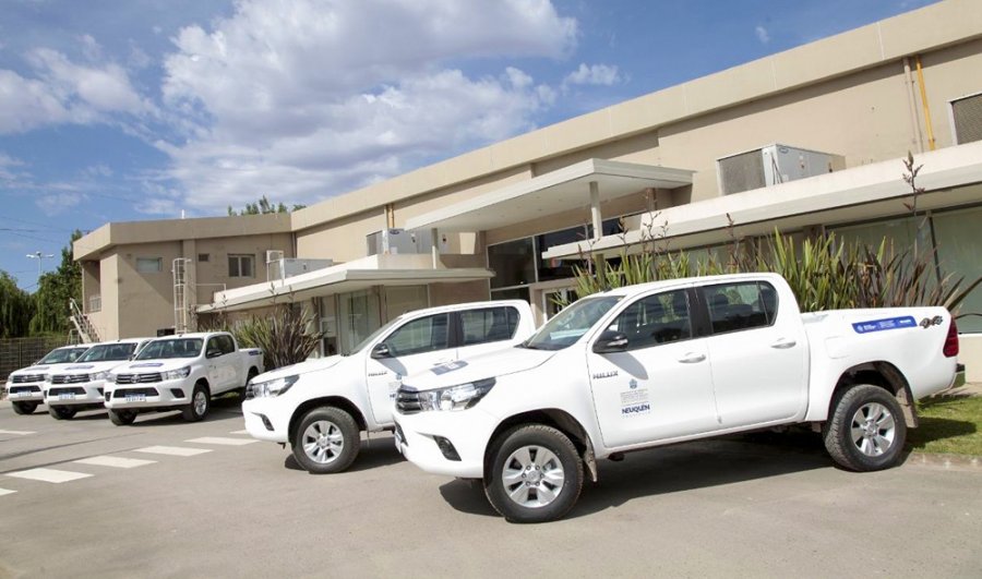 Se trata de cinco camionetas Toyota Hilux 4×4 diésel, doble cabina y doble tracción, que contaron con una inversión de 3.614.500 pesos. Los vehículos se destinarán a la dirección de Control Técnico Operativo, que depende de la subsecretaría y tiene asiento en Plaza Huincul.