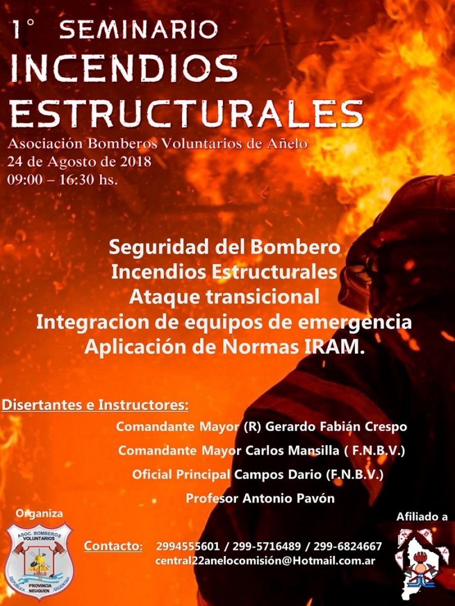 Desde la Asociación de Bomberos Voluntarios de Añelo están organizando “Primer Seminario de Incendios Estructurales” que se dictará en la ciudad de Añelo.