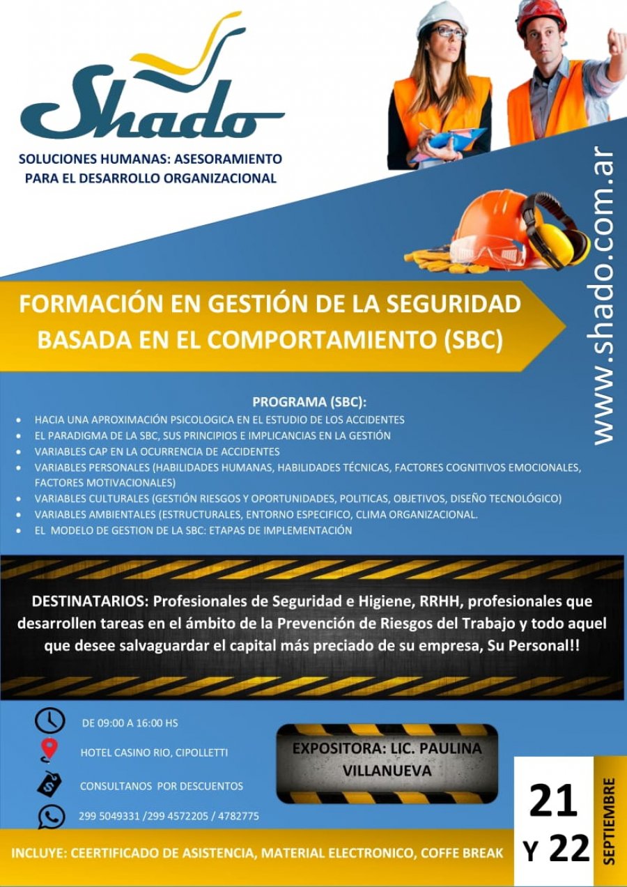 Desde la consultora Shado invitaron a los interesados a participar de la capacitación denominada “Formación en Gestión de la Seguridad Basada en el Comportamiento” (SBC).