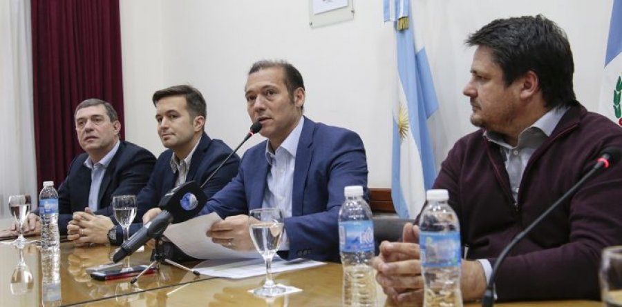 Durante la conferencia, el gobernador estuvo acompañado por los ministros de Energía y Recursos Naturales, Alejandro Monteiro; de Economía e Infraestructura, Norberto Bruno; de Trabajo, Desarrollo Social y Seguridad, Mariano Gaido; de Deporte, Cultura, Juventud y Gobierno, Juan Pablo Prezzoli; y por el presidente de GyP, Alberto Saggese.