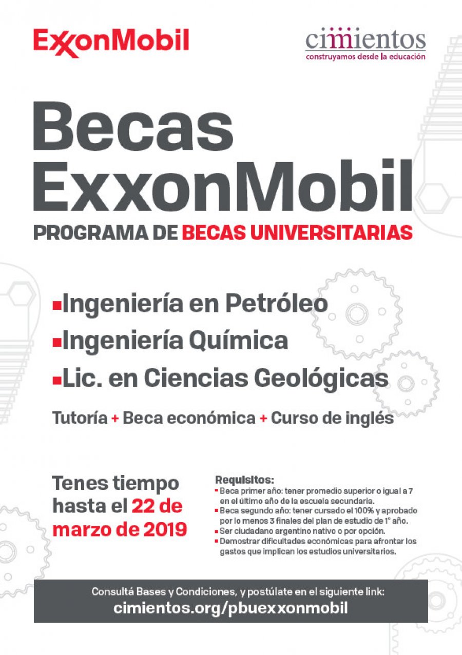 Las Bases y Condiciones pueden consultarse en la web www.cimientos.org/becas/pbuExxonMobil. En ese mismo sitio, además, se recibirán las postulaciones.