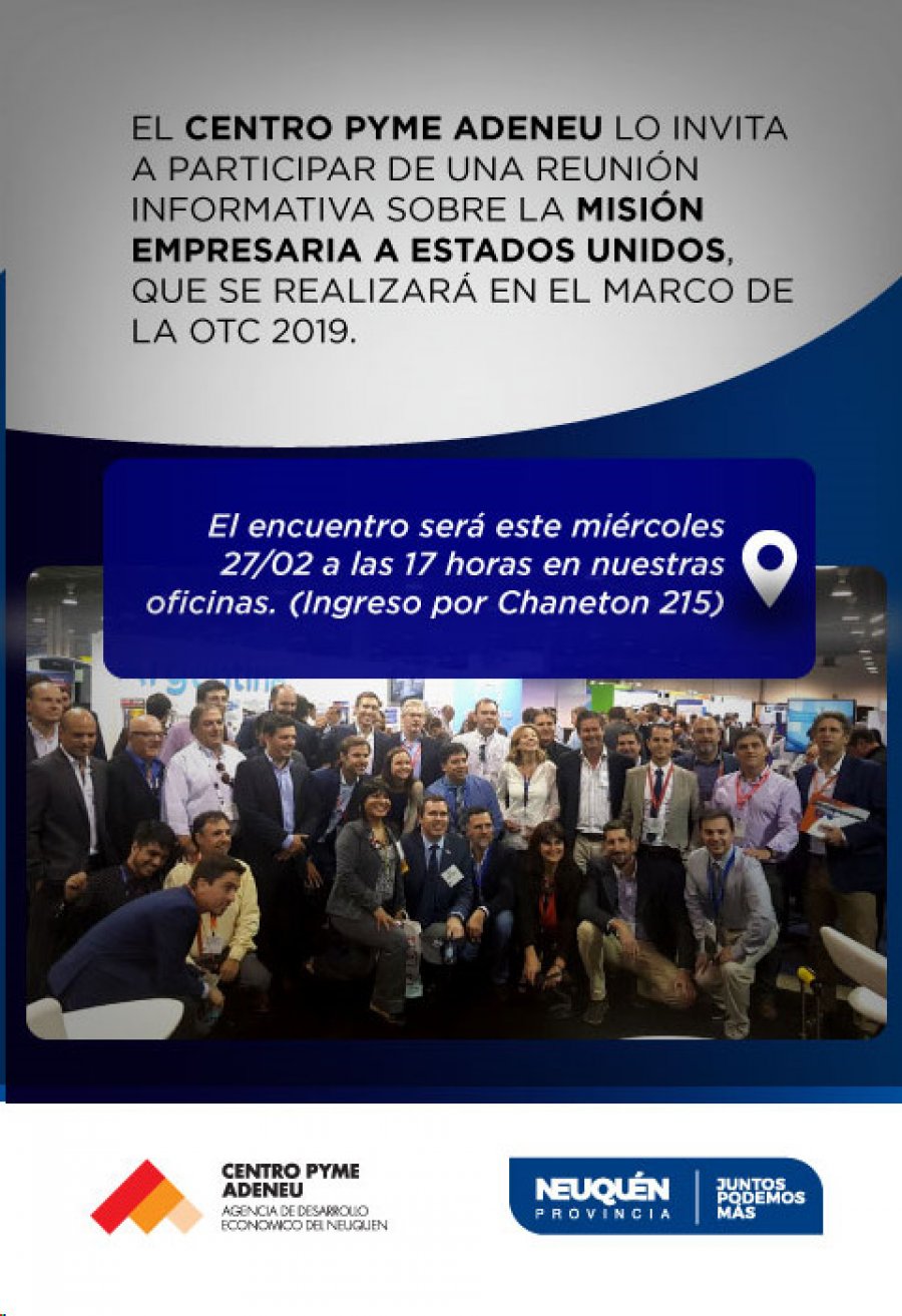 Desde el gobierno de la provincia de Neuquén invitaron a los interesados a participar de un encuentro informativo, de cara a la 5ta. Misión Empresaria a Estados Unidos que se desarrollará en el año 2019.