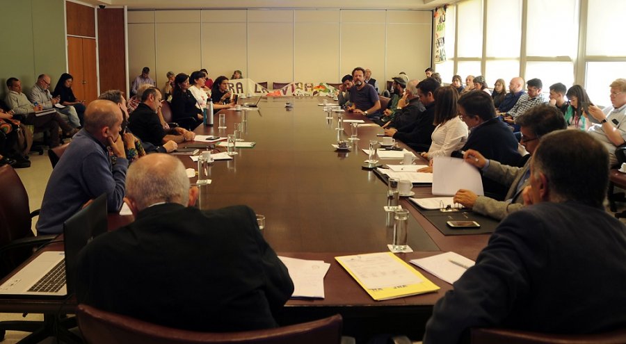 La reunión se realizó el miércoles 17 de abril y participaron representantes de las asambleas socioambientales de Plaza Huincul, Aluminé, Las Coloradas, San Martín y Junín de los Andes, Chos Malal, Huinganco en el marco del tratamiento del proyecto presentado el año pasado de Prohibición del uso del agua en actividades de megaminería.