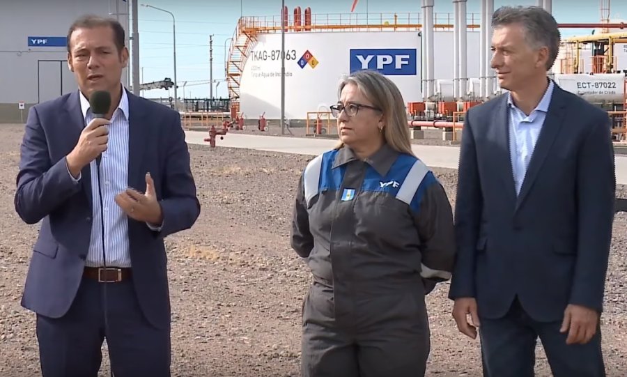 El presidente Mauricio Macri y el gobernador de Neuquén, Omar Gutiérrez, acompañados de funcionarios nacionales y provinciales, junto a las autoridades de YPF y Tecpetrol dejaron formalmente inaugurado este viernes 3 de mayo el oleoducto Loma Campana-Lago Pellegrini.