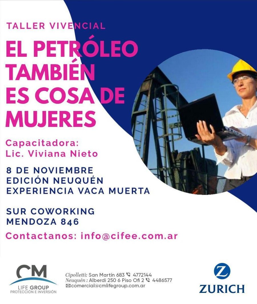 El CIFEE (Creatividad e Innovación en Formación Empresaria Ejecutiva) organiza para el viernes 8 de noviembre el Taller Vivencial “El petróleo también es cosa de mujeres”, de 9 a 17 horas en Sur Coworking, Mendoza 846, de Neuquén capital.