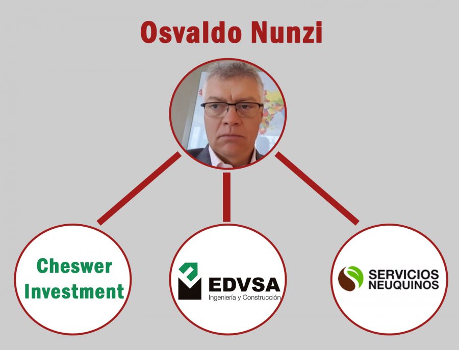 Por su parte la firma Cheswer Investment, CUIT 30-71201559-0, con domicilio fiscal en calle Güemes 4231, Piso 3, dpto. B, de la ciudad Autónoma de Buenos Aires, se encuentra registrada a nombre de Osvaldo Mario Nunzi, argentino, casado, con fecha de nacimiento 5/2/61, de profesión ingeniero, con DNI 14.148.814, y a nombre de Ana Rosa Lamela, argentina, casada, con fecha de nacimiento 2/11/66 de profesión abogada, con DNI 17.959.665, ambos domiciliados en calle Roca 340, de la ciudad de Cipolletti, Río Negro. Su domicilio inicial fue la calle Azucena Maizani 395, oficina 803, CABA.