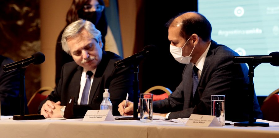 El presidente de la Nación Alberto Fernández y el gobernador Omar Gutiérrez firmaron convenios para la asistencia por parte del gobierno nacional para la realización de obras, entre ellos un Acuerdo Federal de Desarrollo, por el cual Neuquén tiene asignados 2.145 millones de pesos. De ese total ya se encuentran comprometidos 1.300 millones de pesos en obras ejecutadas o a en proceso de adjudicación; quedando disponibles 845 millones de pesos para futuras obras.