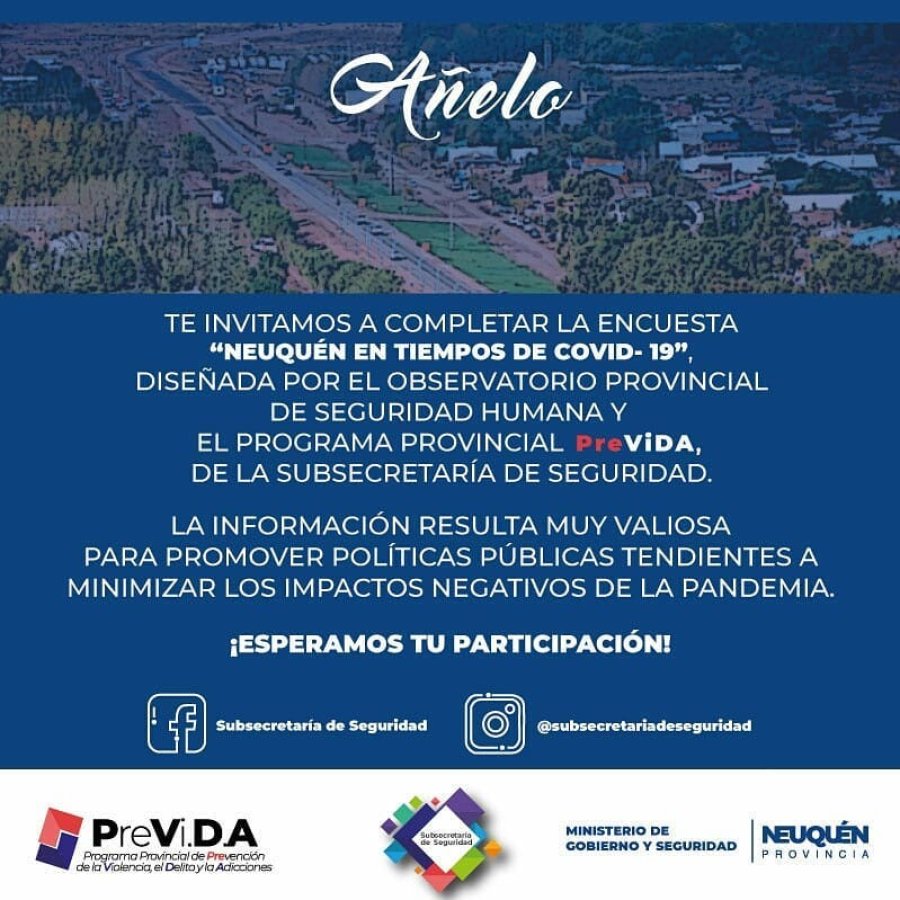 “Con este propósito, te invitamos a completar la siguiente encuesta, es anónima y pensada para todas las personas que viven en la provincia del Neuquén”, se agrega.