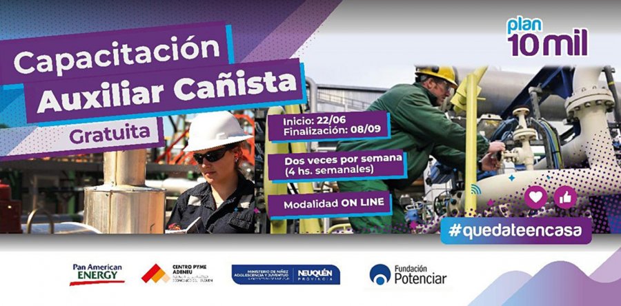 Cerca de 70 jóvenes de diversos puntos de la provincia iniciaron el lunes 22 de junio el cursado de la capacitación sobre auxiliar cañista, una de las propuestas del Plan 10 Mil, una iniciativa del gobierno provincial que comenzó en 2019 y que cuenta con el financiamiento del Programa Pymes de Pan American Energy.