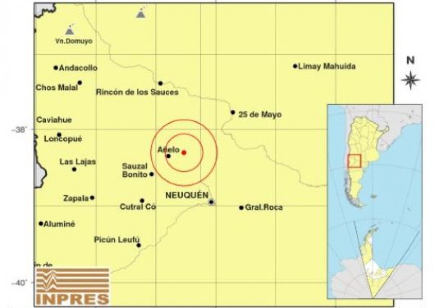 Según los datos que registró el Instituto nacional de Previsión Sísmica (Inpress), el movimiento telúrico sucedió a las 16.35, el epicentro fue situado entre las localidades de Añelo y Sauzal Bonito, a 83 kilómetros del Noroeste de Neuquén y 92 kilómetros del Noreste de Cutral Co.
