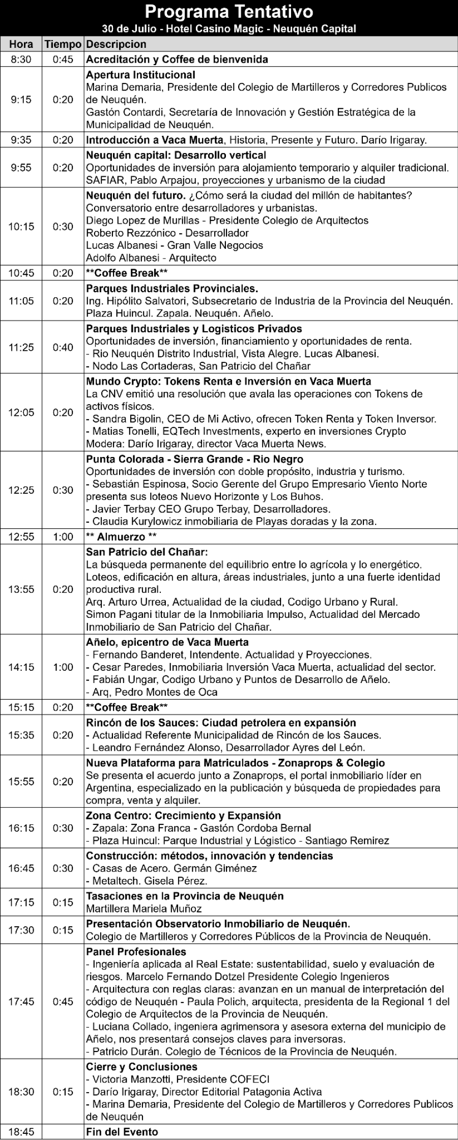 Profesionales que acercan la oferta a la demanda. Este evento es una oportunidad única para conocer en profundidad el mercado local y regional, identificar oportunidades concretas y conectar con desarrolladores, inversionistas, constructoras y empresas vinculadas a Vaca Muerta.