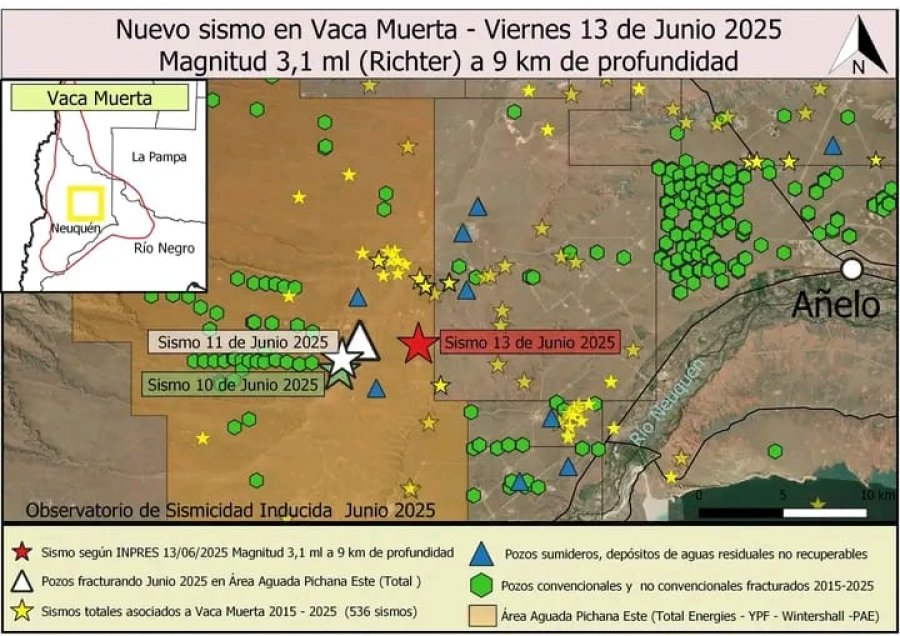 El Observatorio de Sismicidad Inducida informó que el viernes 13 de junio se produjo un nuevo sismo en Vaca Muerta, a 25 kilómetros de Sauzal Bonito y a 30 de Añelo.