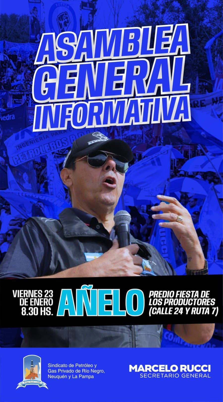El sindicato de Petróleo y Gas Privado de Río Negro, Neuquén y La Pampa, convocó a sus afiliados a una asamblea informativa para el viernes 23 de enero en Añelo.
