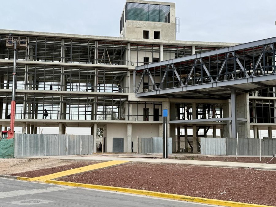 La municipalidad de Neuquén informó que el Edificio 1 del Polo Tecnológico se inaugurará en septiembre, en coincidencia con el aniversario de la ciudad. Los avances son más que notorios: el cerramiento exterior está prácticamente terminado y una de sus caras —la que da al sur— luce completamente vidriada, mostrando la estética moderna y funcional que caracterizará a todo el conjunto.