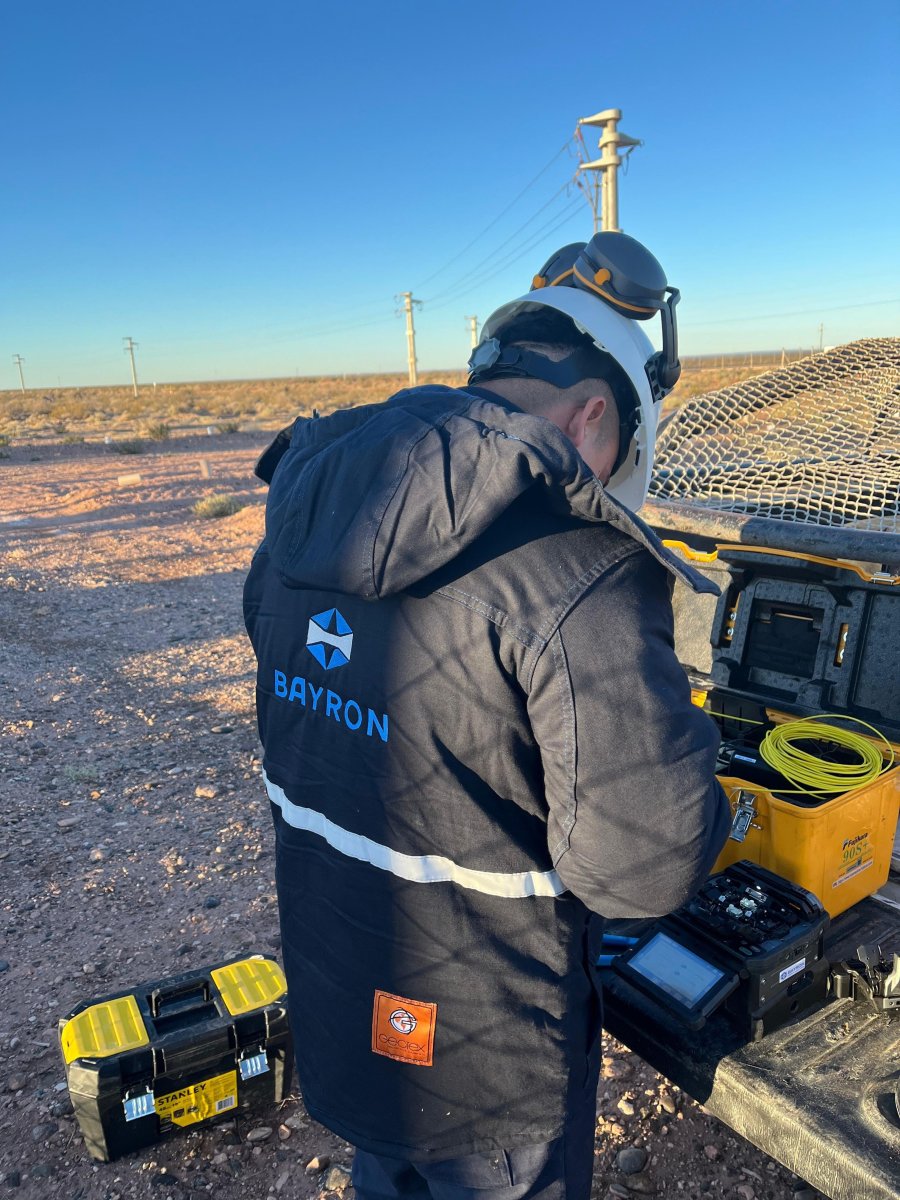 Además de sus alianzas con Claro y ARSAT, Bayron amplió su campo de acción hacia los parques eólicos, el despliegue de redes OPGW en alta tensión y la conexión de pads, plantas y ductos para compañías como Vista, Shell e YPF. También realiza monitoreo, detección de fallas y reparaciones, garantizando la continuidad de servicios críticos en áreas donde detenerse no es una opción.