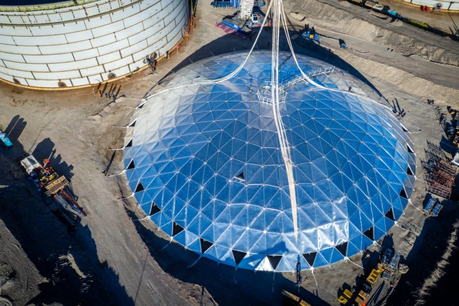 El domo fue diseñado bajo Norma API 650 – Apéndice G por la empresa Tecnagent y montado por AESA, bajo supervisión de YPF. La operación se ejecutó mediante un izaje completo en una sola maniobra, con un alto nivel de precisión técnica y coordinación entre equipos.